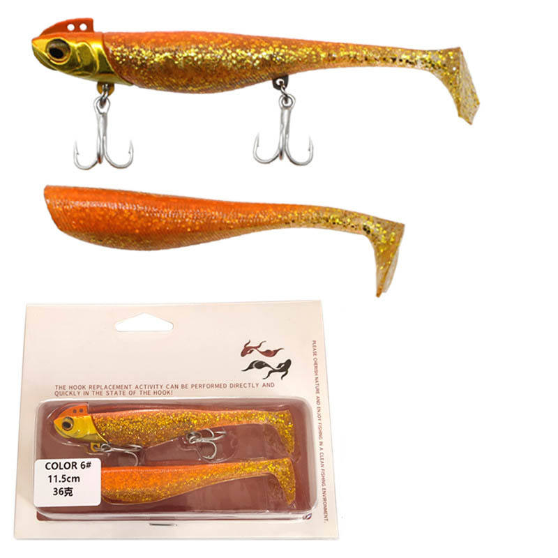 Wholesale 11.5cm/36g Fishing Jig Lure Lead Fish Lead Head With T Tail Soft Lures Fishing Paddle Tail Swim Baits