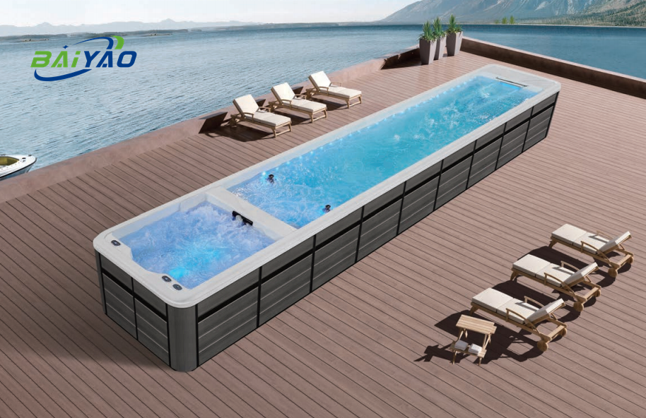 ขายส่ง 12 เมตรของเหลวอะคริลิคหรูหรากลางแจ้งครอบครัวขนาดใหญ่ใช้กีฬากลางแจ้งว่ายน้ําสปาสระว่ายน้ําไม่มีที่สิ้นสุดสระว่ายน้ําสปาสระว่ายน้ํา