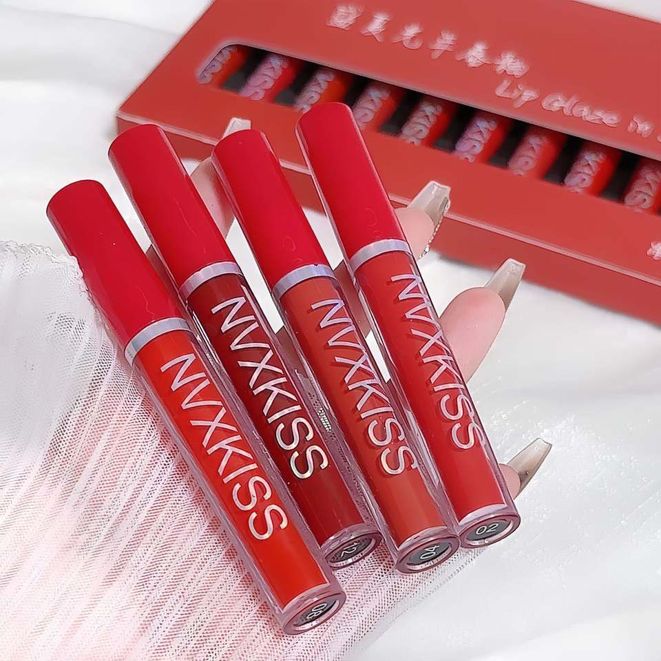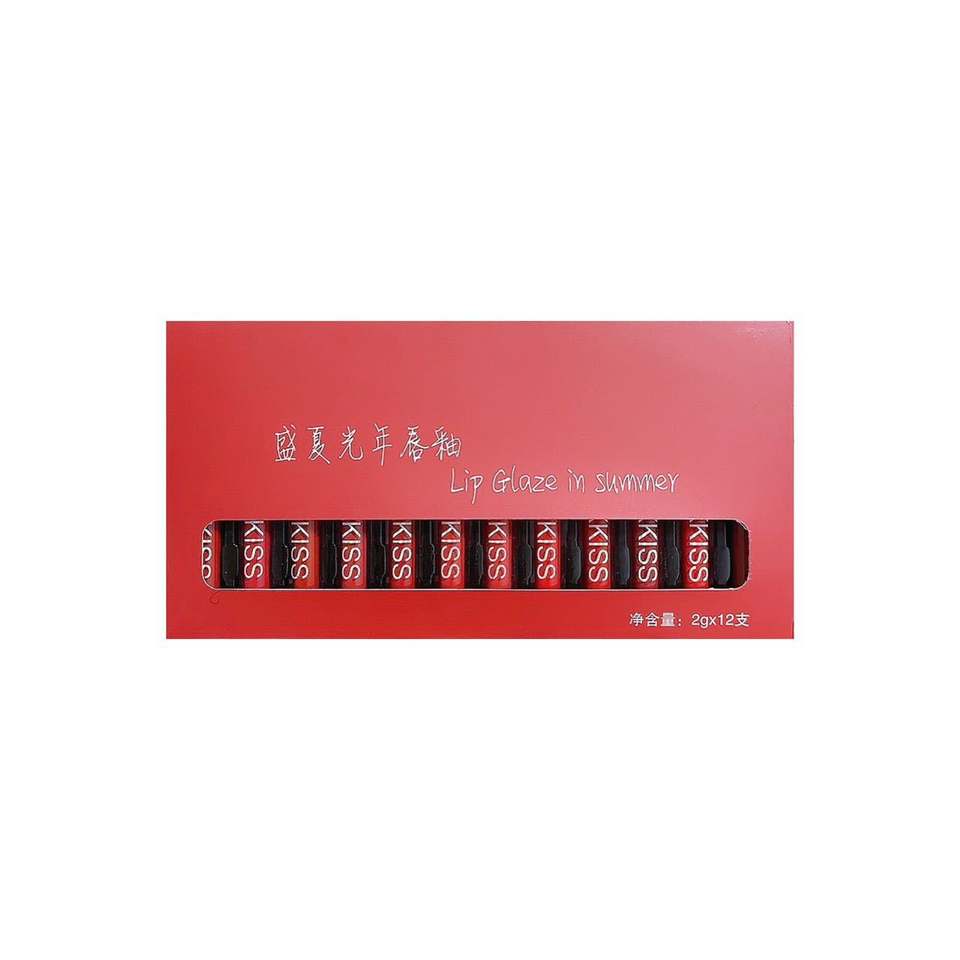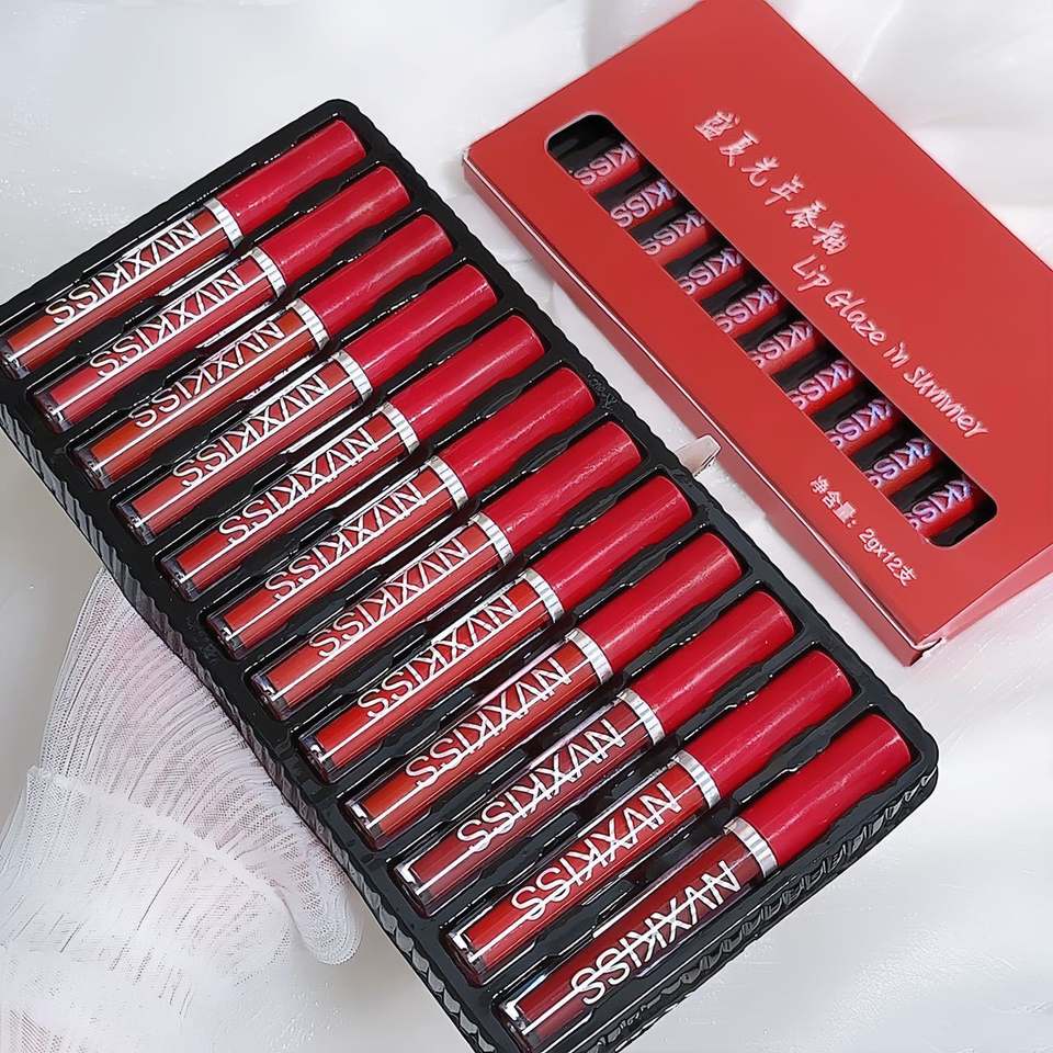 ชุดลิปกลอสเคลือบเงาแบบวีแกน12แพ็กสีขาวสไตล์อินเทอร์เน็ตดารานักเรียนไม่ซีดจางง่าย