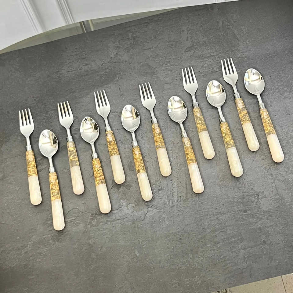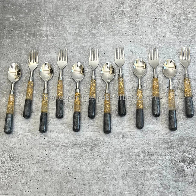 ชุดเครื่องใช้บนโต๊ะอาหารทำจากโลหะเรซิน12ชิ้นช้อนส้อมทำจากทองเหลืองใช้สำหรับห้องครัวร้านอาหาร