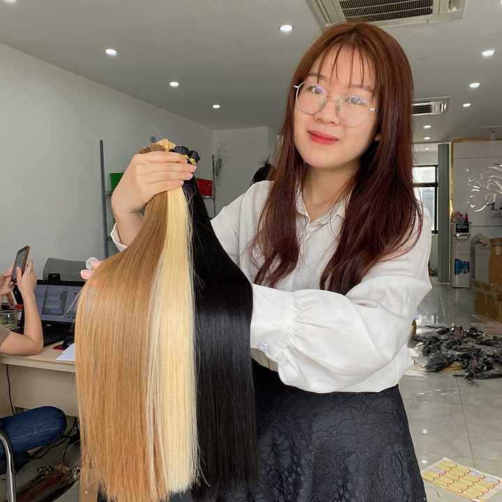 ผมเคราตินต่อปลายผม12A เกรด I เปลี่ยนสีผมมนุษย์ระดับพรีเมี่ยมแบบไม่หลุดร่วงปรับแต่งได้