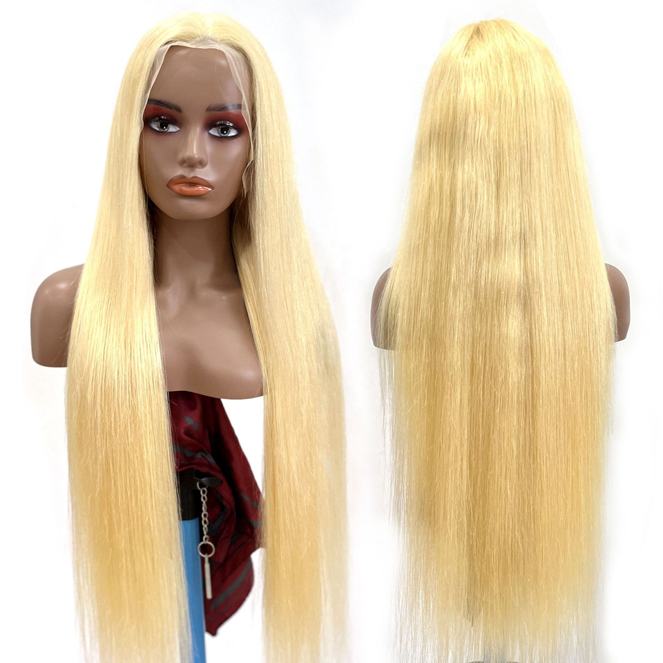 วิกผมแท้แบบผูกเชือกด้านหน้า 13x4 แบบแสกข้างตรง สีทอง ถอนขนแล้ว ฟอกปม ไม่ต้องใช้กาว