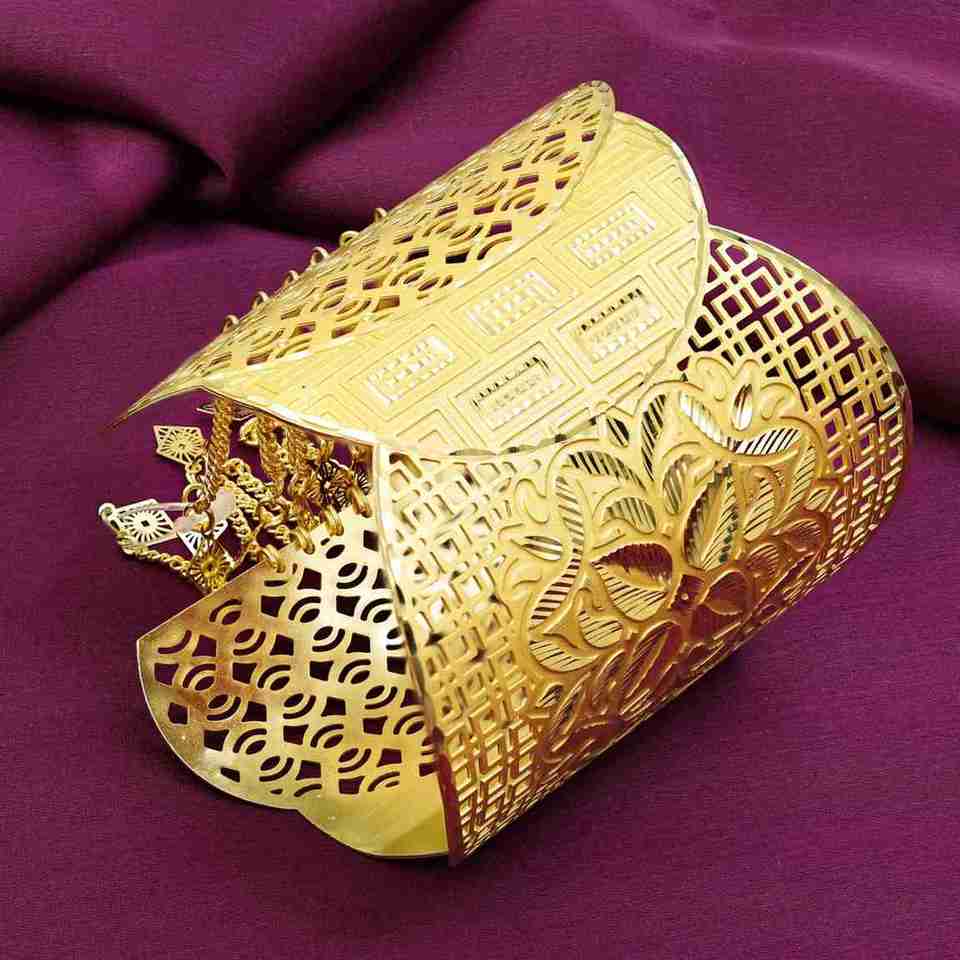 กำไลข้อมือทองคำแท้ 14K 18K 24K ลายฉลุแบบดั้งเดิม ดีไซน์แบบคด้า ขายส่ง เครื่องประดับแฟชั่น กำไลข้อมือทองเหลืองแบบคด้า