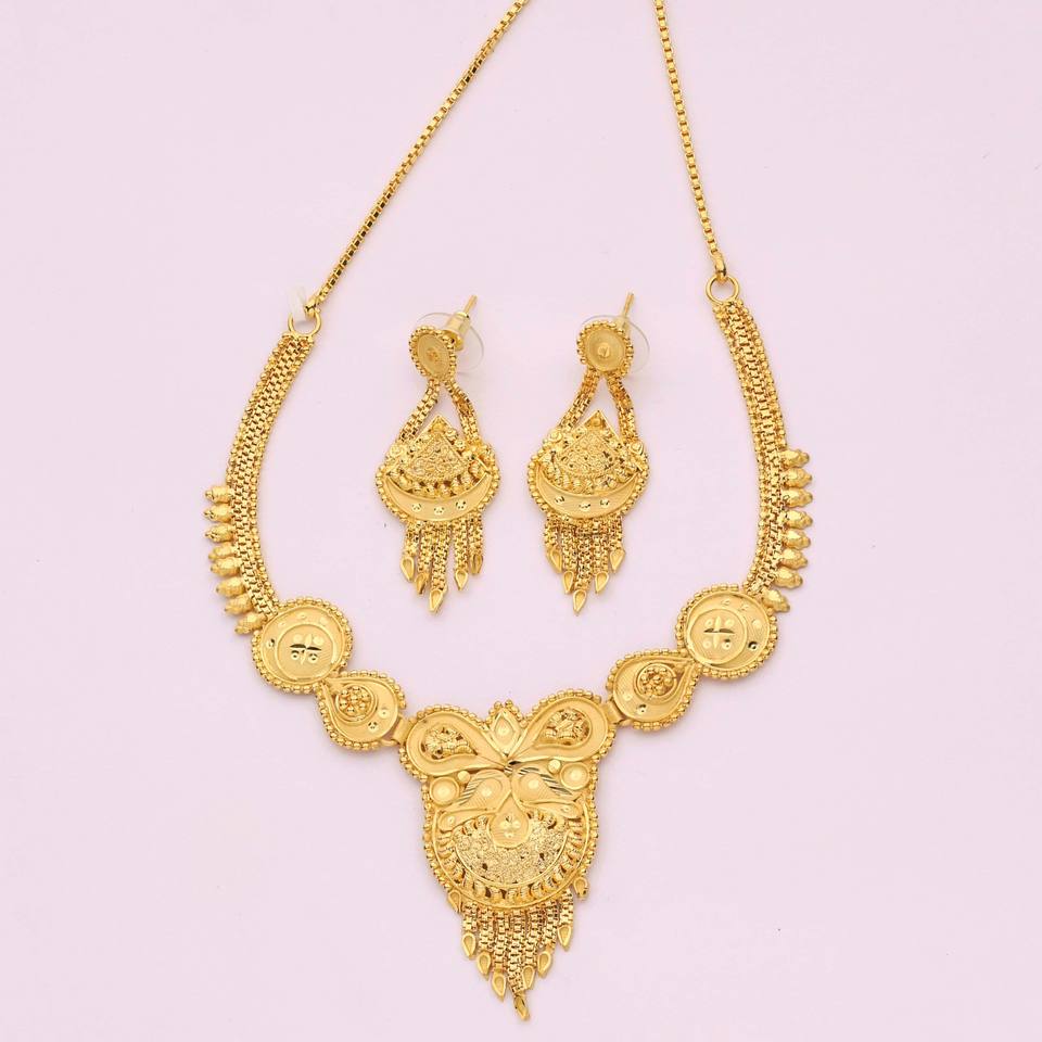 ขายส่งสร้อยคอรูปชุบทอง14K 18K 24K พร้อมต่างหูชุดเครื่องประดับแบบดั้งเดิมสร้อยคอแฟชั่นใส่ทองทองเหลือง