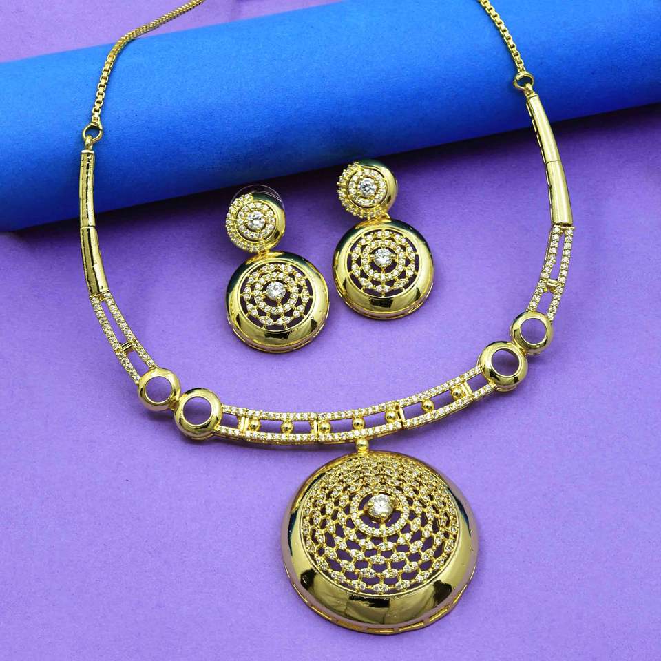 14K 18K 24K Micro Gold Plated Forming AD Stone Necklaces Setประเภทสร้อยคอ