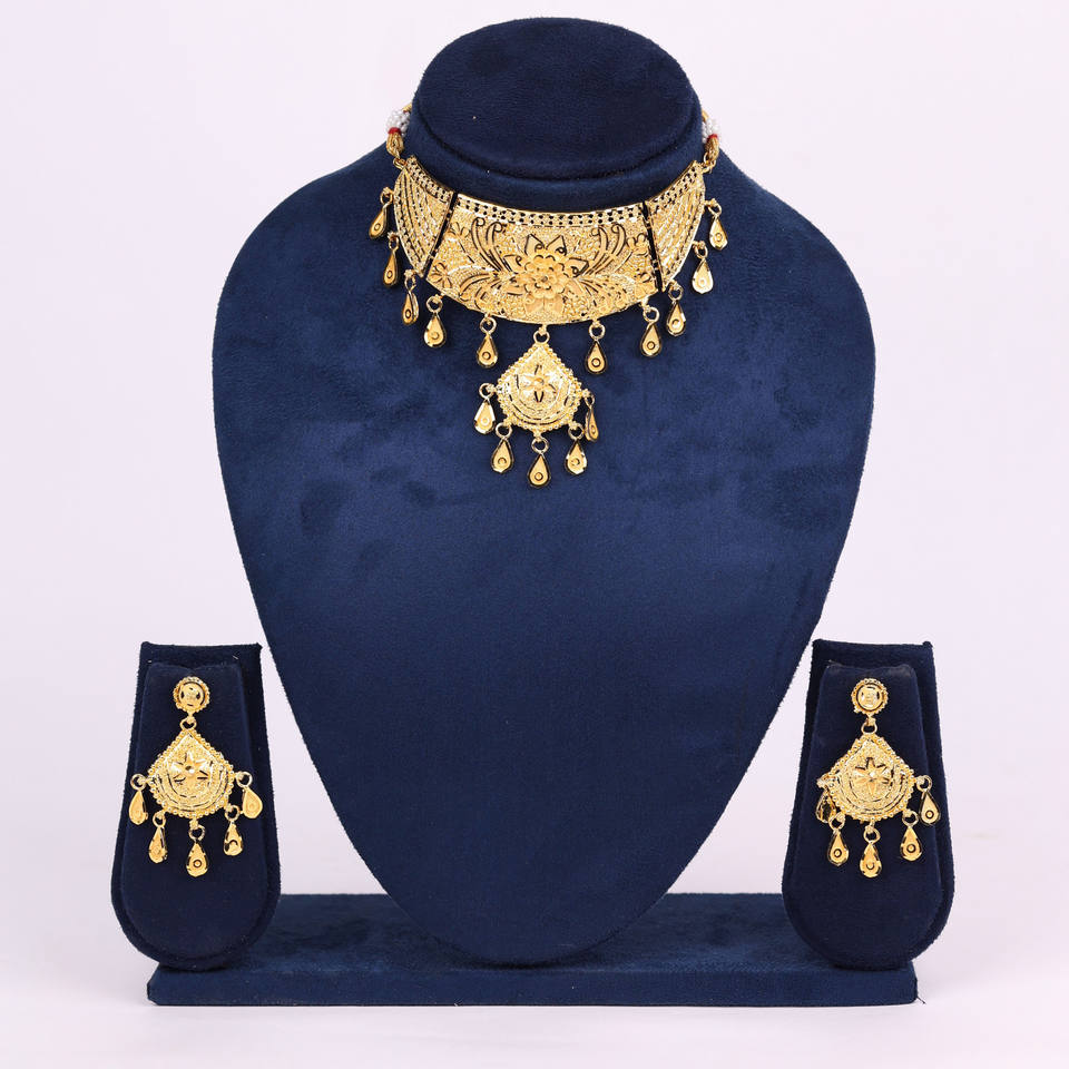 ชุดเครื่องประดับงานแต่งงาน14K 18K 24K สร้อยคอชุบทองขนาดเล็กดีไซน์ดอกไม้แฟชั่นแบบดั้งเดิม