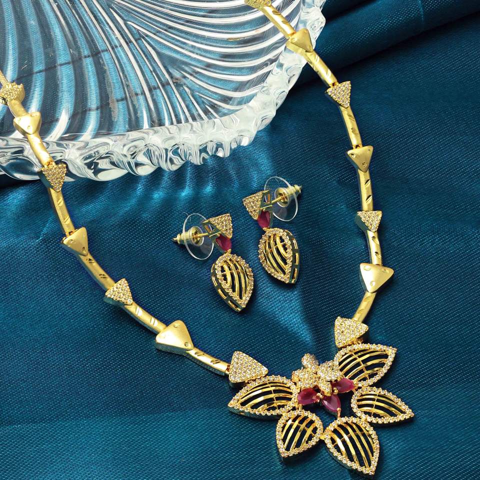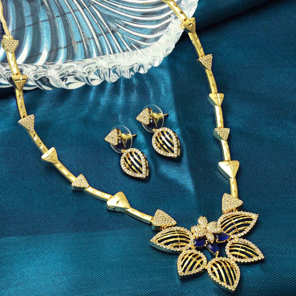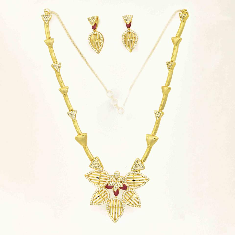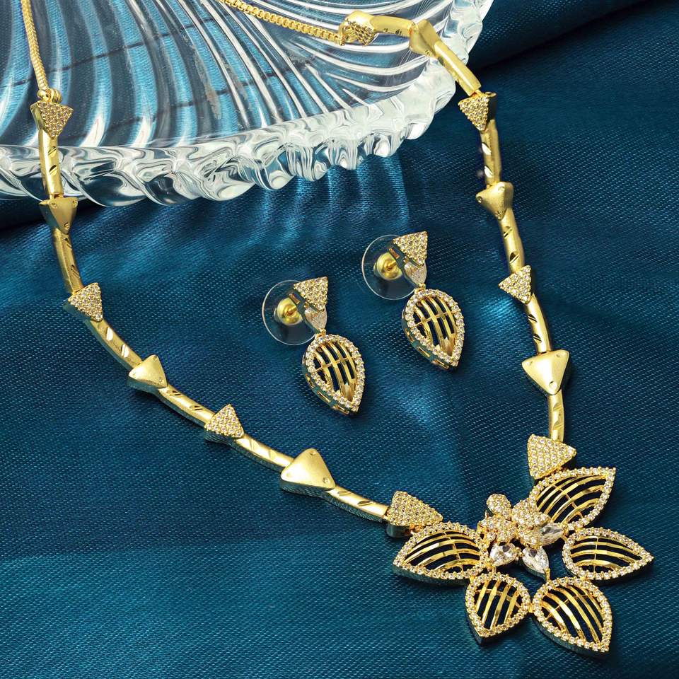 ชุดเครื่องประดับทองชุบไมโคร 14K 18K 24K ลายดอกไม้ แฟชั่นแบบดั้งเดิมสำหรับงานแต่งงาน สร้อยคอและต่างหู ขายส่ง