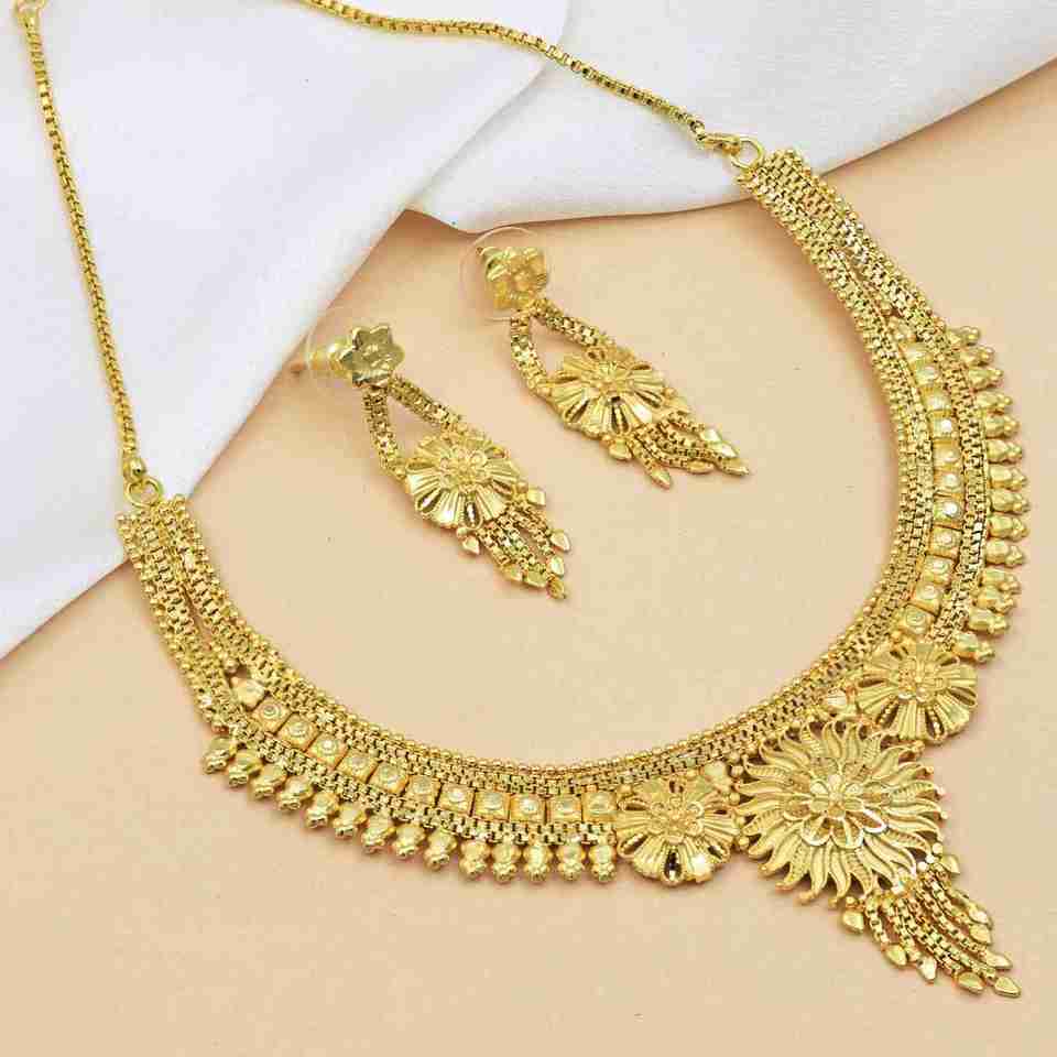 ชุดเครื่องประดับทองชุบไมโคร 14K 18K 24K ลายดอกไม้ ทำจากทองเหลืองแบบดั้งเดิม ขายส่ง ชุดสร้อยคอและต่างหู