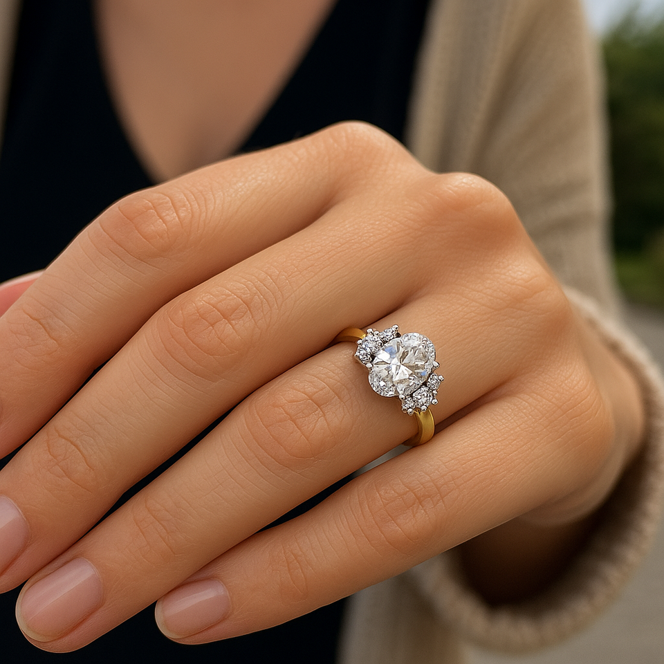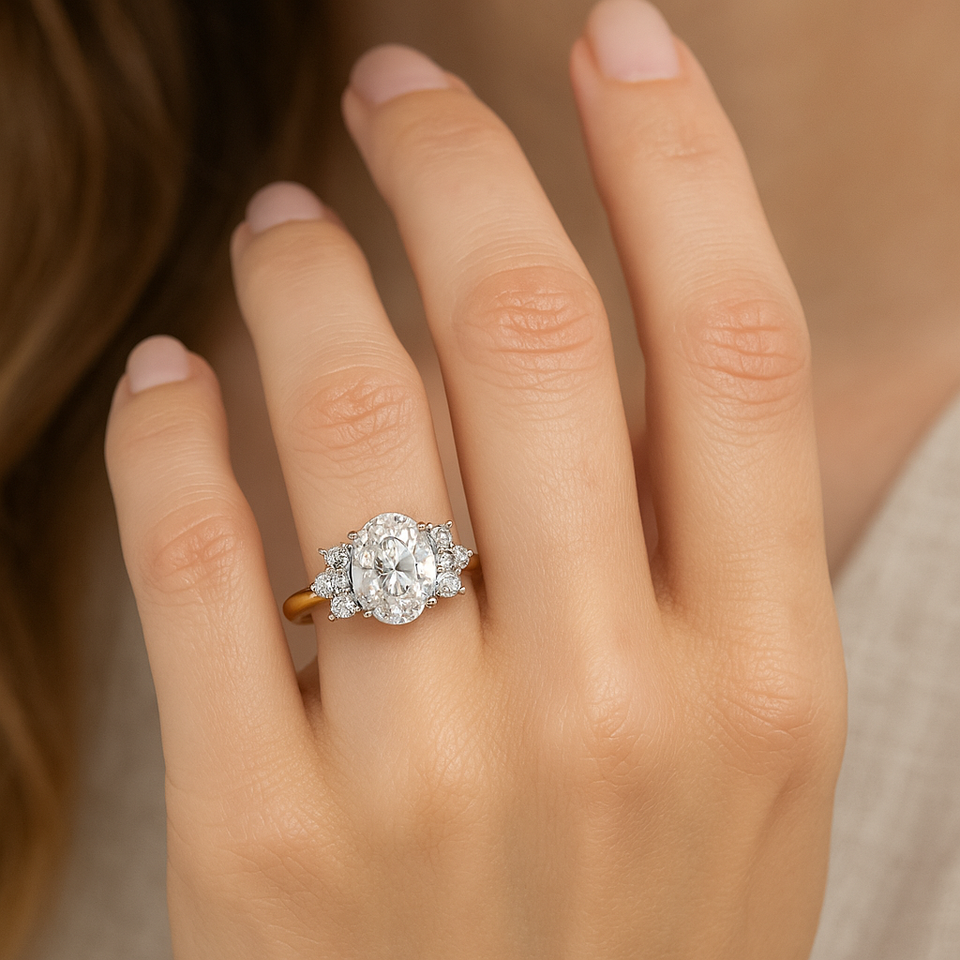 แหวนหมั้นเพชรสีทอง14K แหวนแต่งงานทรงรีสำหรับผู้หญิงได้รับการรับรองจาก VVS Moissanite