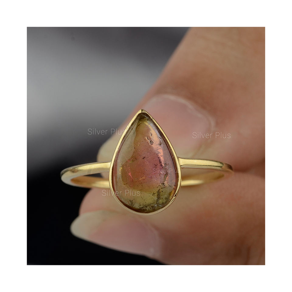 แหวนทองคำแท้ 14K ประดับทัวร์มาลีนสีแตงโม จากผู้ผลิตอินเดีย เครื่องประดับคุณภาพ
