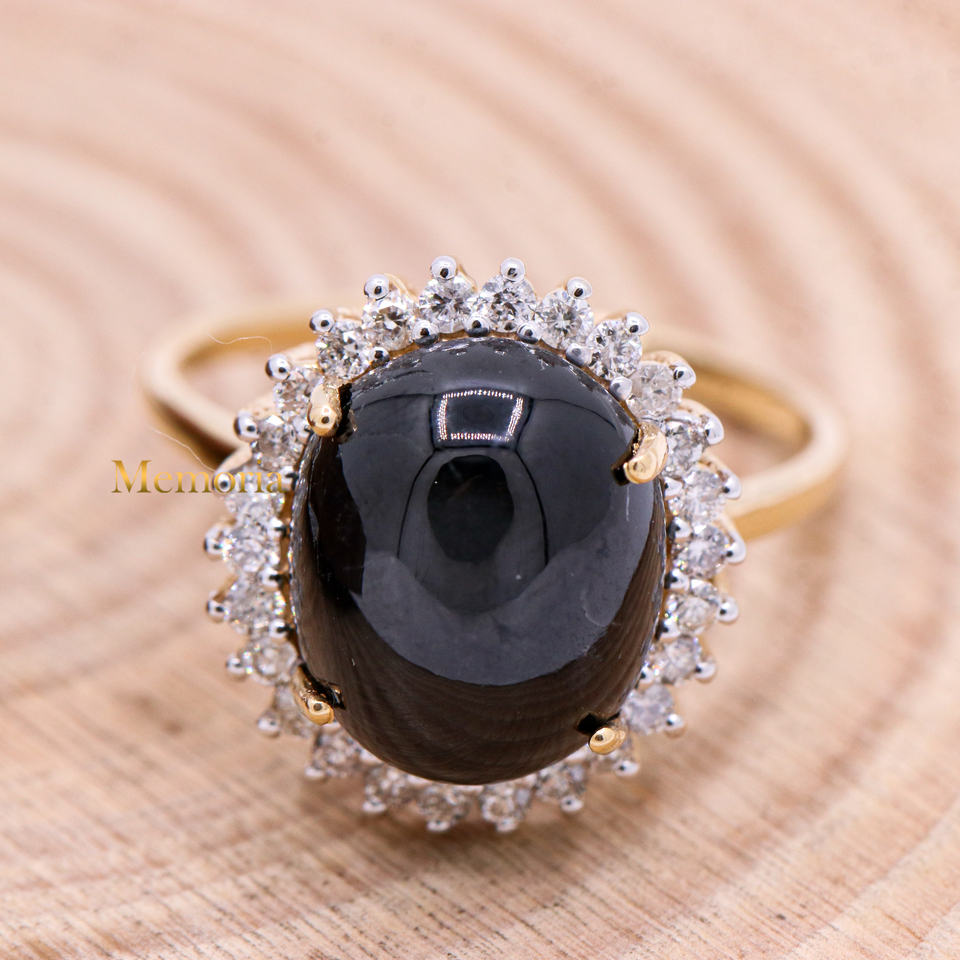 Jewelry Name:Black star 14k Yellow Gold Ring