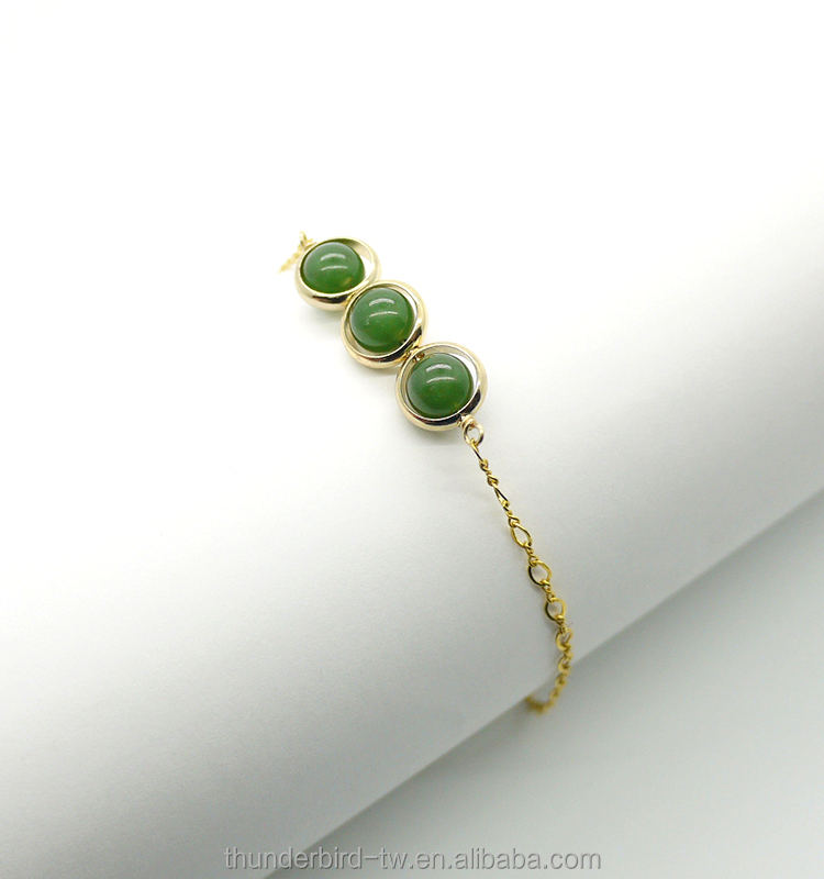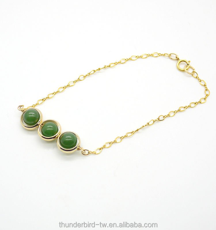 สร้อยข้อมือ14KF ลูกปัดหยกธรรมชาติ3เม็ด