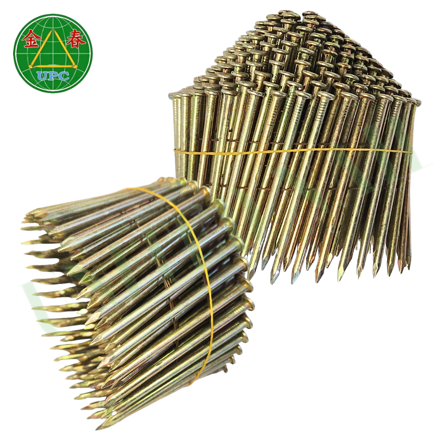 Wholesale 15 Degree Galvanized 4500pcs 3" x 0.120 Coil Nails for Pallet Making OEM Supplier Zinc Yellow-Chromate Plated
