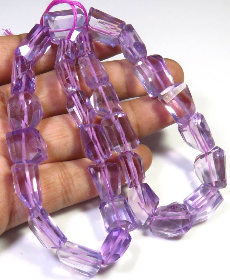 ลูกปัดพลอยสีม่วงขนาด15-17มม. ลูกปัดพลอยสีม่วงแบบเหลี่ยมเพชรพลอยยาว12-17มม. ขายส่ง