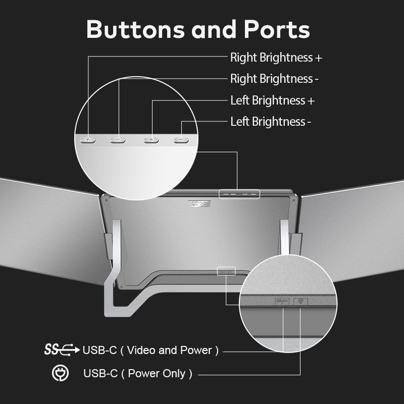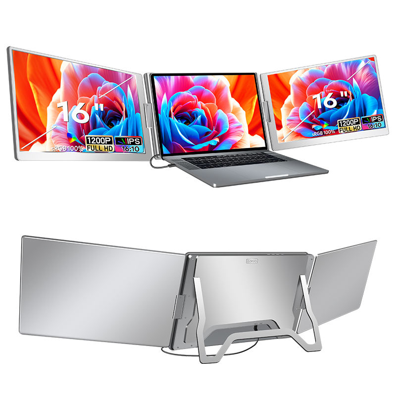 จอภาพพกพาแบบสามจอขนาด 16 นิ้ว ความละเอียด 1200P เชื่อมต่อผ่านสาย USB-C หนึ่งเส้น รองรับจอคู่ HDR IPS จำหน่ายส่งสำหรับธุรกิจการค้า หุ้น และฟอเร็กซ์