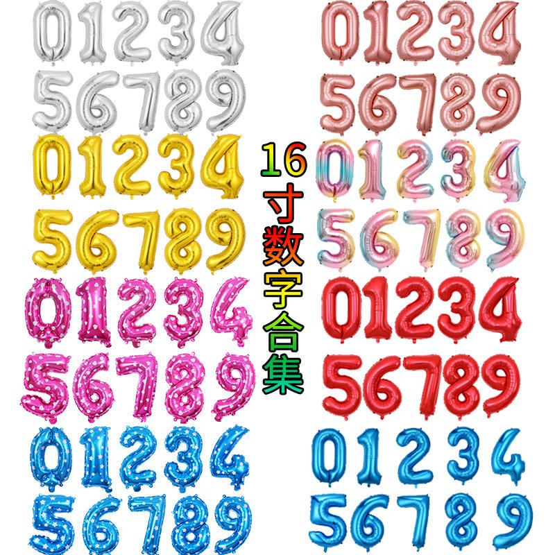 ลูกโป่งฟอยล์อลูมิเนียมดิจิทัลขนาด16นิ้วสำหรับตกแต่งงานเลี้ยงวันเกิด