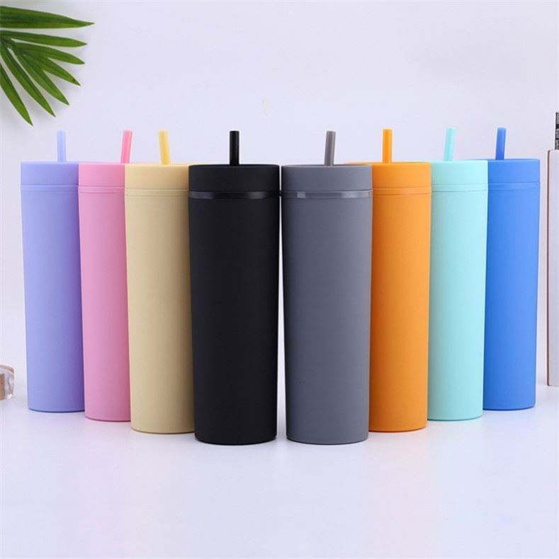 แก้วทัมเบลอร์สีพาสเทลอะคริลิคทรงผอมขนาด16ออนซ์450มล. แบบนำกลับมาใช้ใหม่ได้