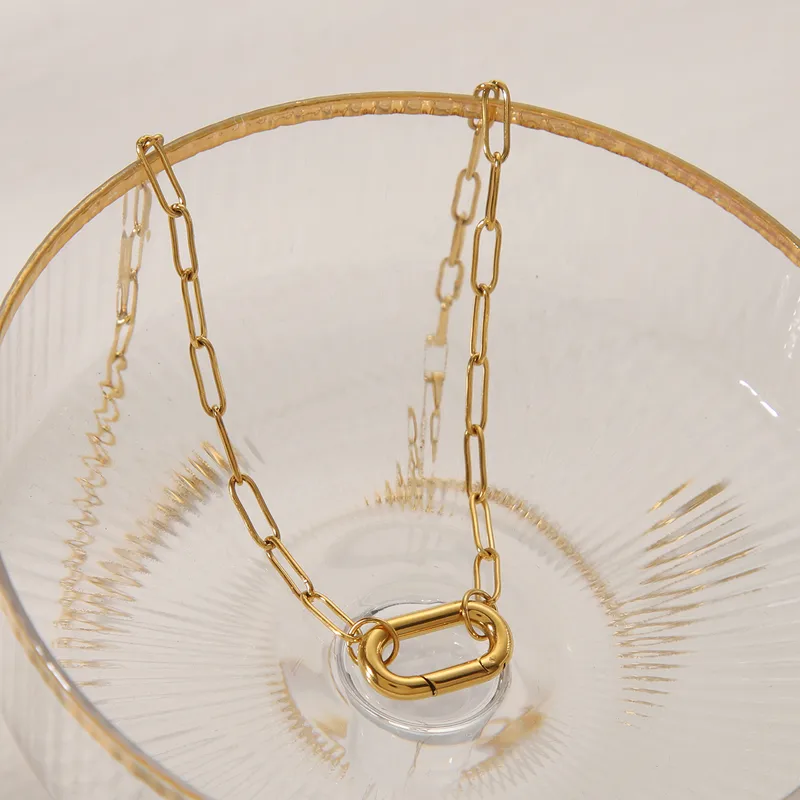สร้อยคอจี้สี่เหลี่ยมพื้นฐานชุบทอง 18K พร้อมสายฟิกาโร่สแตนเลส 304 สำหรับใส่ลำลองและเดินทาง