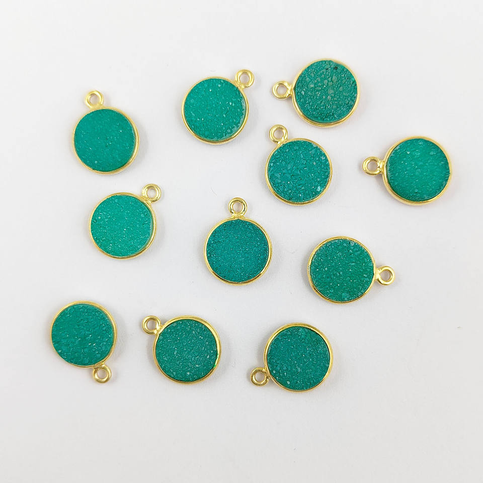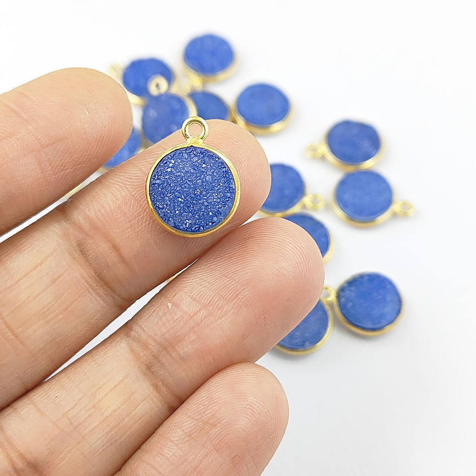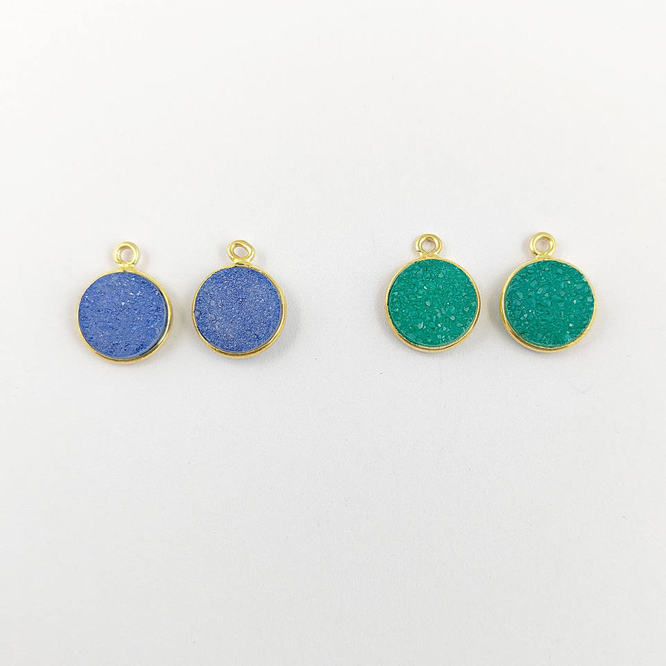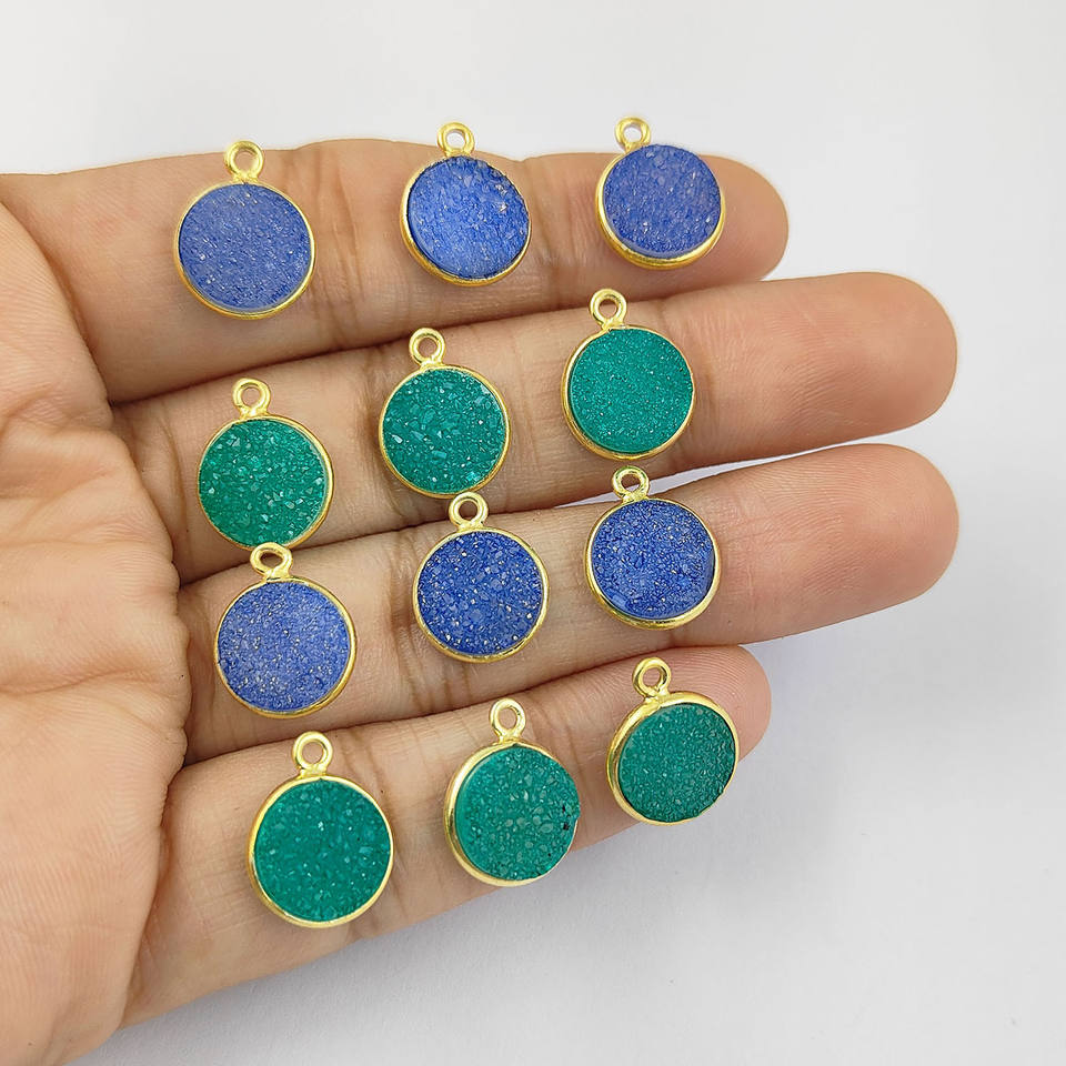 จี้กลมดรูซี่สีทอง18K พร้อมจี้อัญมณีดรูซี่สีเขียวและสีฟ้าสำหรับคริสเตียนขายส่ง