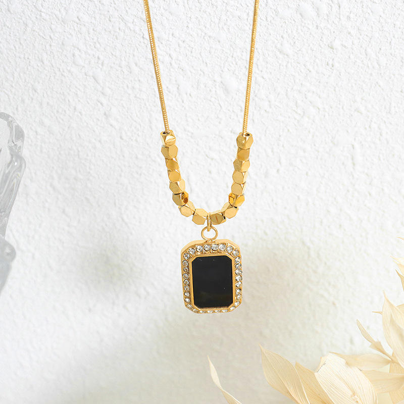 สร้อยคอพร้อมจี้ชุบทอง18K ทำจากสเตนเลสสตีลสร้อยคอลูกบาศก์เซอร์โคเนียสี่เหลี่ยมสีดำสำหรับเป็นของขวัญสำหรับผู้หญิง