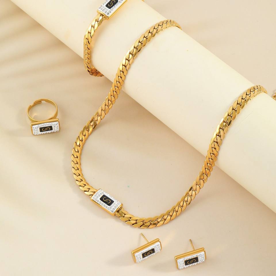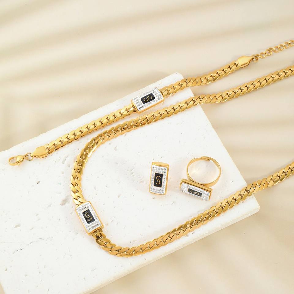 ขายส่ง18K ชุบทองสแตนเลสเครื่องประดับฮิปฮอปเครื่องประดับไมอามี่โมนาโกคิวบาสร้อยคอสร้อยข้อมือแหวนต่างหูชุด4ชิ้น