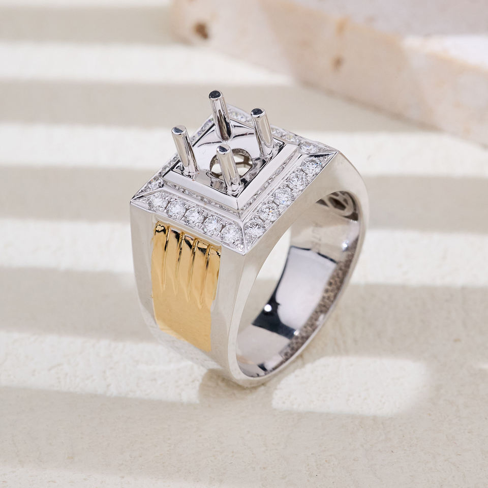 แหวนเพชรกึ่งยึดแบบทูโทน18K สำหรับผู้ชายแหวนชั้นดีแวววาวสวมใส่ได้ทุกวันลายทางแนวตั้งสีขาวธรรมชาติ