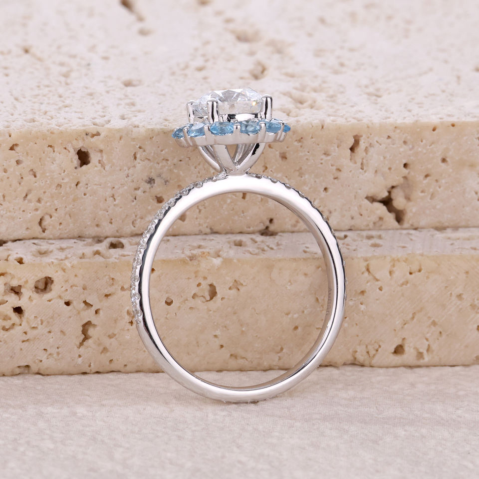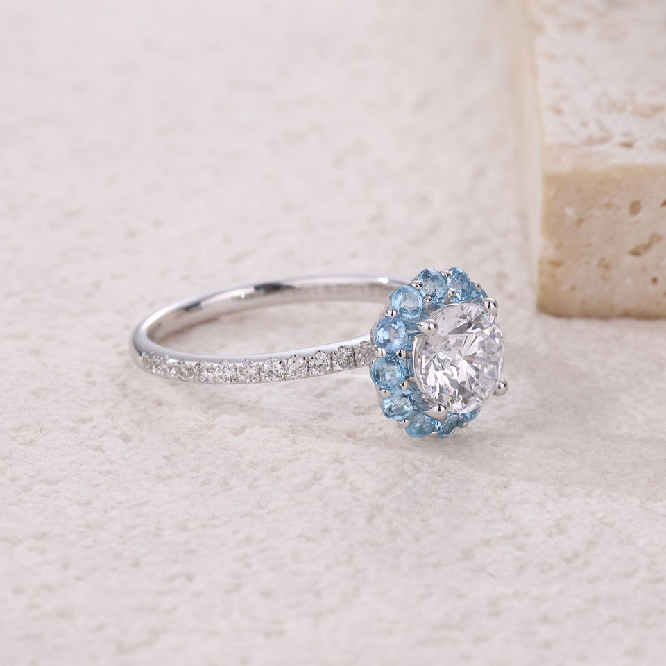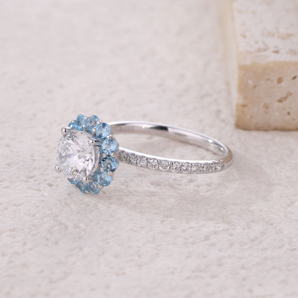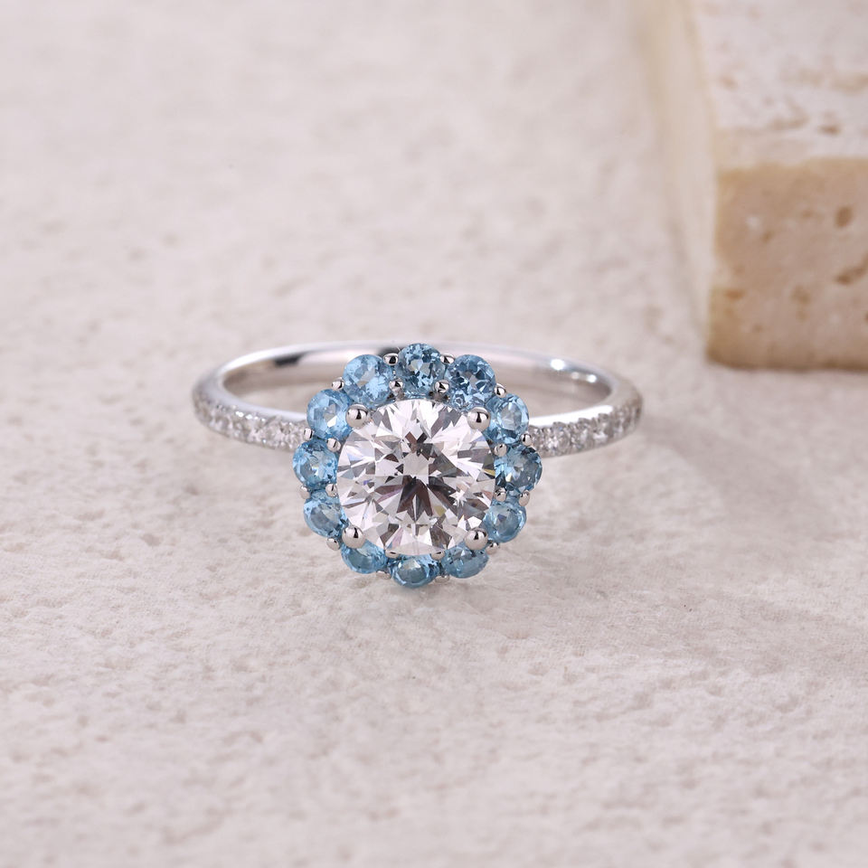 แหวนหมั้นและแต่งงานสำหรับผู้หญิง ทองคำขาว 18K ชุบโรเดียม ประดับเพชรแล็บโกรว์ 1 กะรัต พร้อมบลูโทแพซ รับรองโดย IGI ขายส่ง