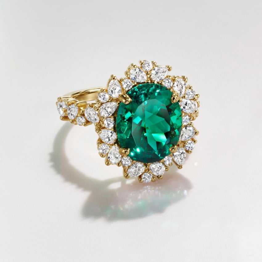 แหวนค็อกเทลทองคำขาว 18K แบบคลาสสิก ประดับมรกตธรรมชาติทรงรี และเพชรเลี้ยงในห้องปฏิบัติการ เครื่องประดับชั้นดี ขายส่ง