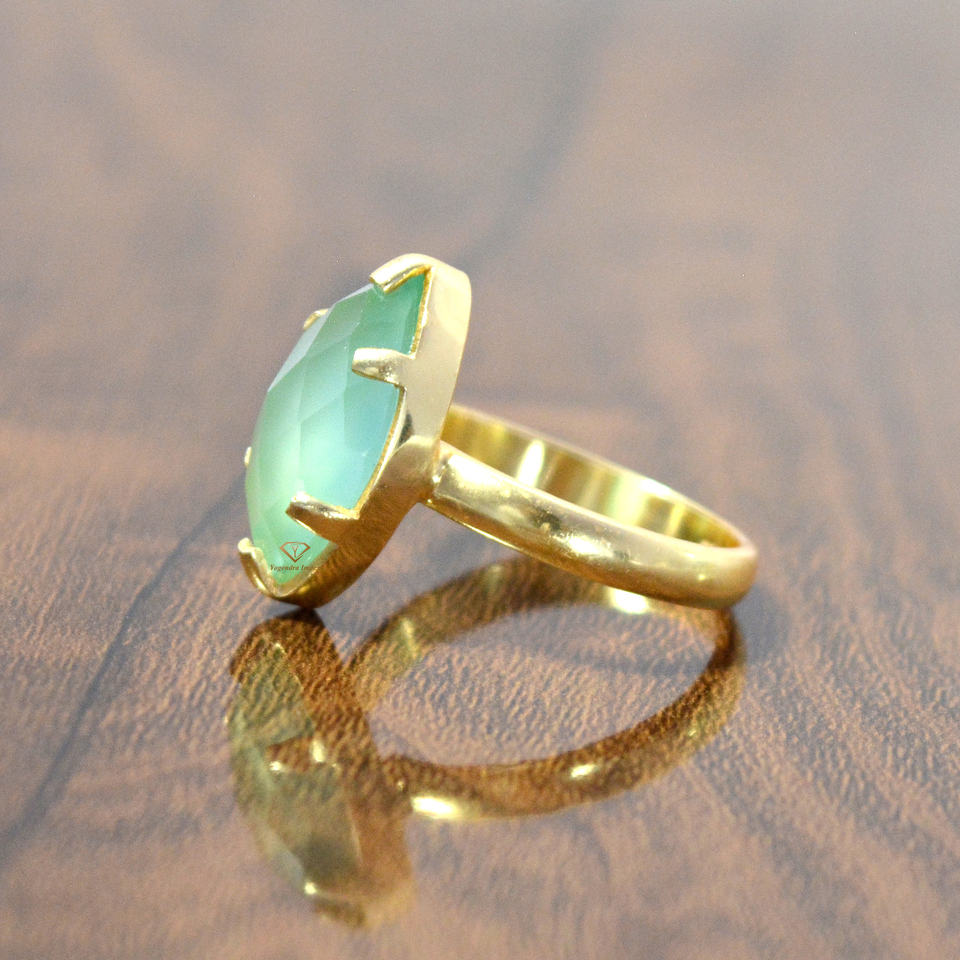 แหวนเงินสเตอร์ลิง925ชุบทอง18K ทำด้วยมือพลอยคาลซิโดนีธรรมชาติสำหรับงานแต่งงานงานหมั้น
