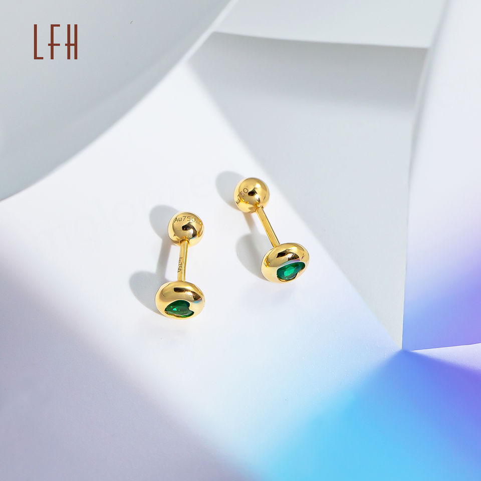 ขายส่งต่างหูลูกปัดทองแท้ขนาด18K ต่างหูเม็ดเล็กสีทอง18K ต่างหูเม็ดเดี่ยวเซอร์โคเนียสีทอง Au750แท้18K