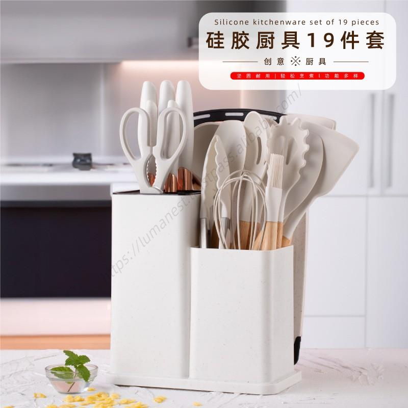 ชุดอุปกรณ์ครัว 19 ชิ้น/ชุด ขายส่ง ทนความร้อน ทำจากซิลิโคน มีดและเขียง