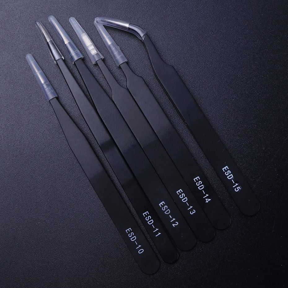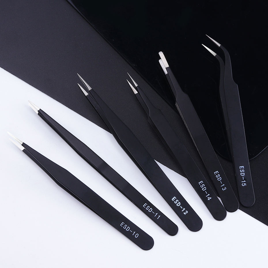 ขายส่ง 1 ชิ้น แหนบป้องกันไฟฟ้าสถิตย์ ESD สีดำ สแตนเลส พกพาสะดวก ขนาดเล็ก สำหรับซ่อมอุปกรณ์อิเล็กทรอนิกส์ ชุดอุปกรณ์อิเล็กทรอนิกส์ LM