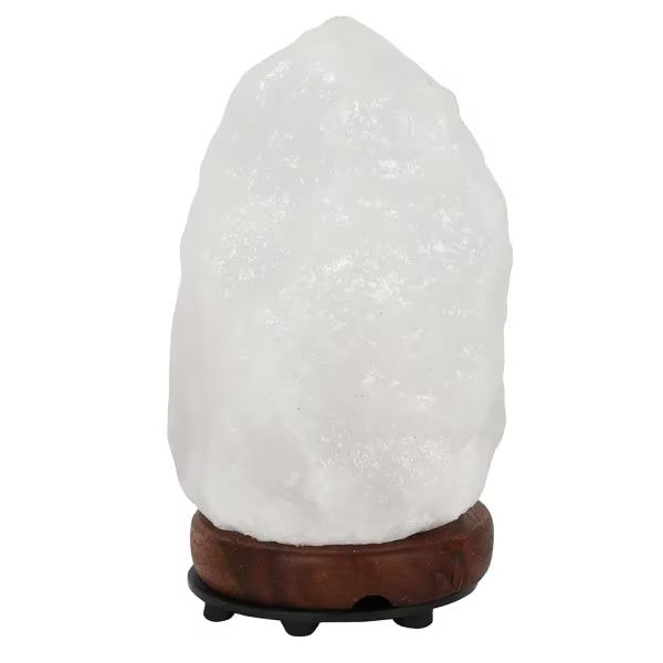 โคมไฟเกลือหิมาลัยสีขาวขนาด 2-3 กก. พร้อมฐานไม้ โคมไฟคริสตัลเกลือบำบัด
