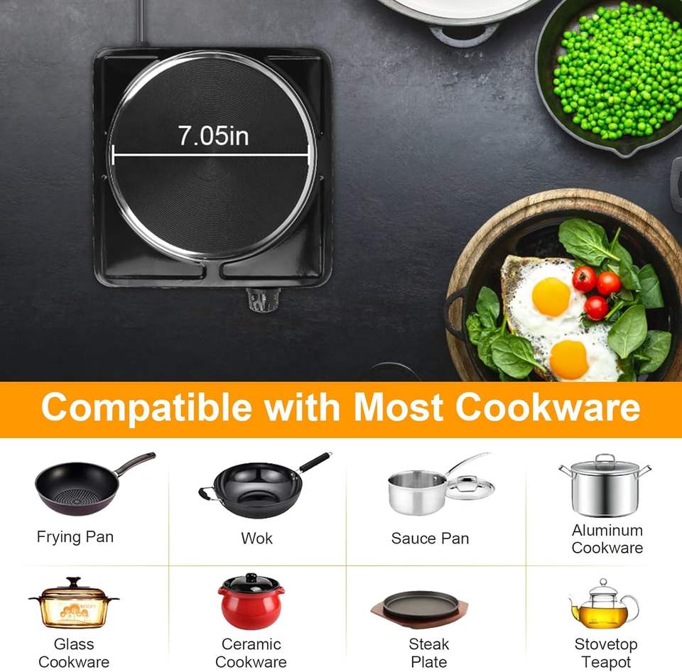 เตาไฟฟ้าแบบพกพา 2 หัวเตา พร้อมระบบทำความร้อนแบบขดลวด สำหรับใช้ในครัวเรือน กำลังไฟ 1000 วัตต์ ทำความสะอาดง่าย ผลิตจากสแตนเลส
