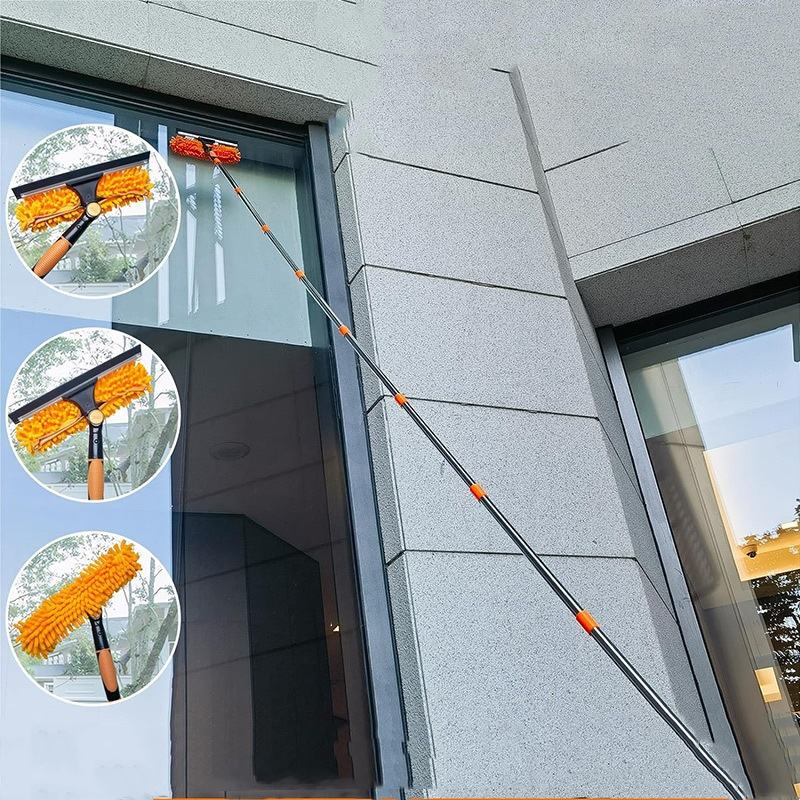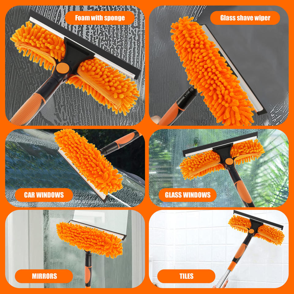 ไม้ปาดน้ำทำความสะอาดกระจกแบบ 2 in 1 แบบหมุนได้ ยืดหดได้ อุปกรณ์ทำความสะอาดอเนกประสงค์สำหรับใช้ในบ้าน ขายส่ง