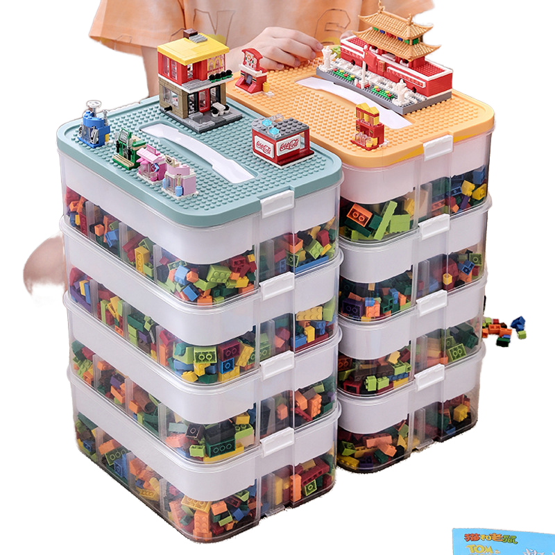 กล่องเก็บของเล่นแบบซ้อนได้ 2 ชั้น สำหรับบล็อกตัวต่อ ตุ๊กตา และงานฝีมือ ฝาปิดในตัว ปรับได้ 3 ระดับ ขายส่ง