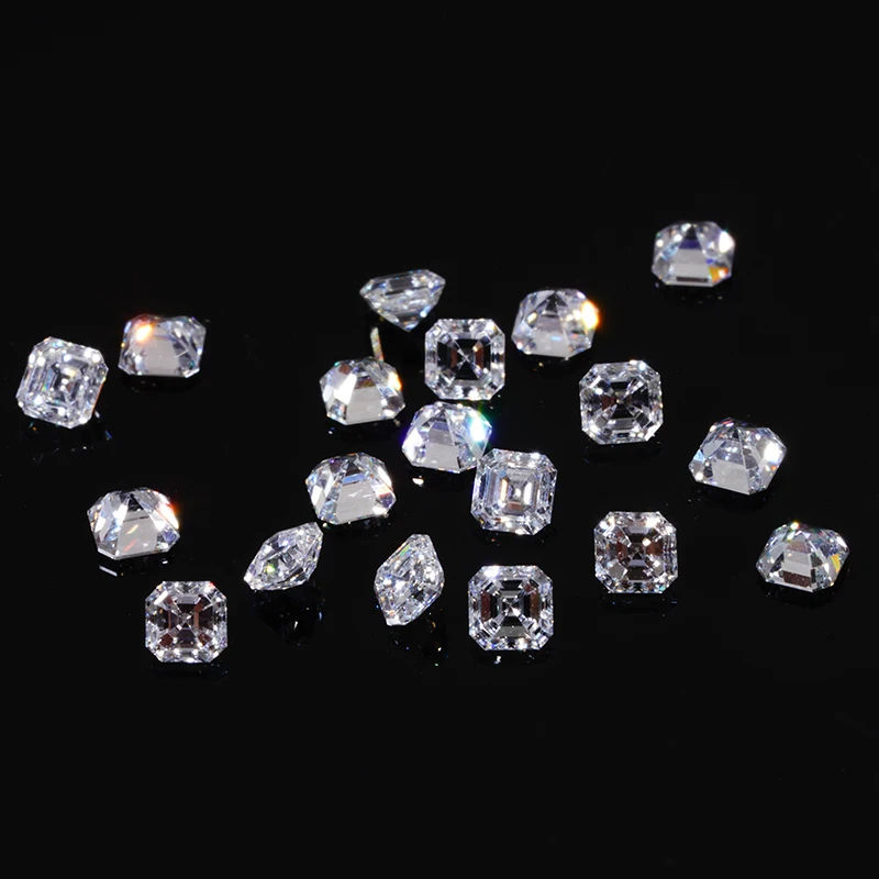 เพชรหลวมทรงอัสเชอร์ เกรด F สี F ความเจียระไนแบบบริลเลียนท์ ขนาด 2 มม. ผลิตด้วยวิธี HPHT/CVD จากห้องปฏิบัติการ ขายส่งโดย SHRAMAN DIAMOND สำหรับทำเครื่องประดับตามสั่ง
