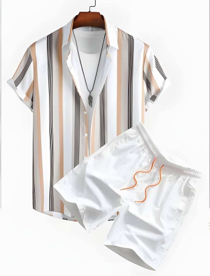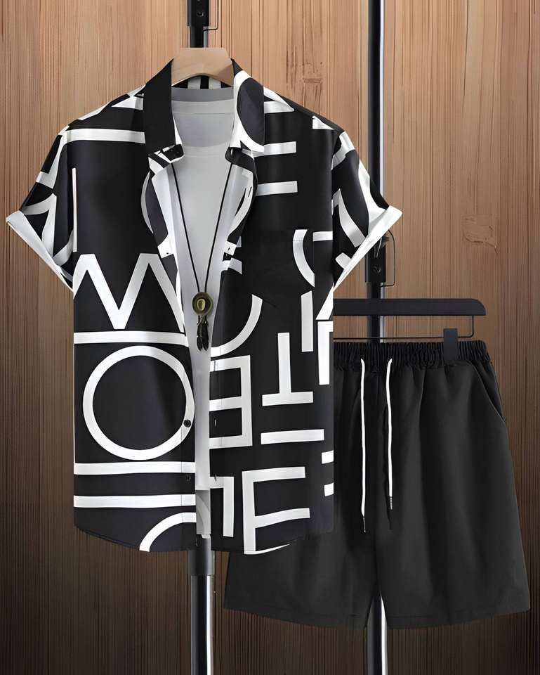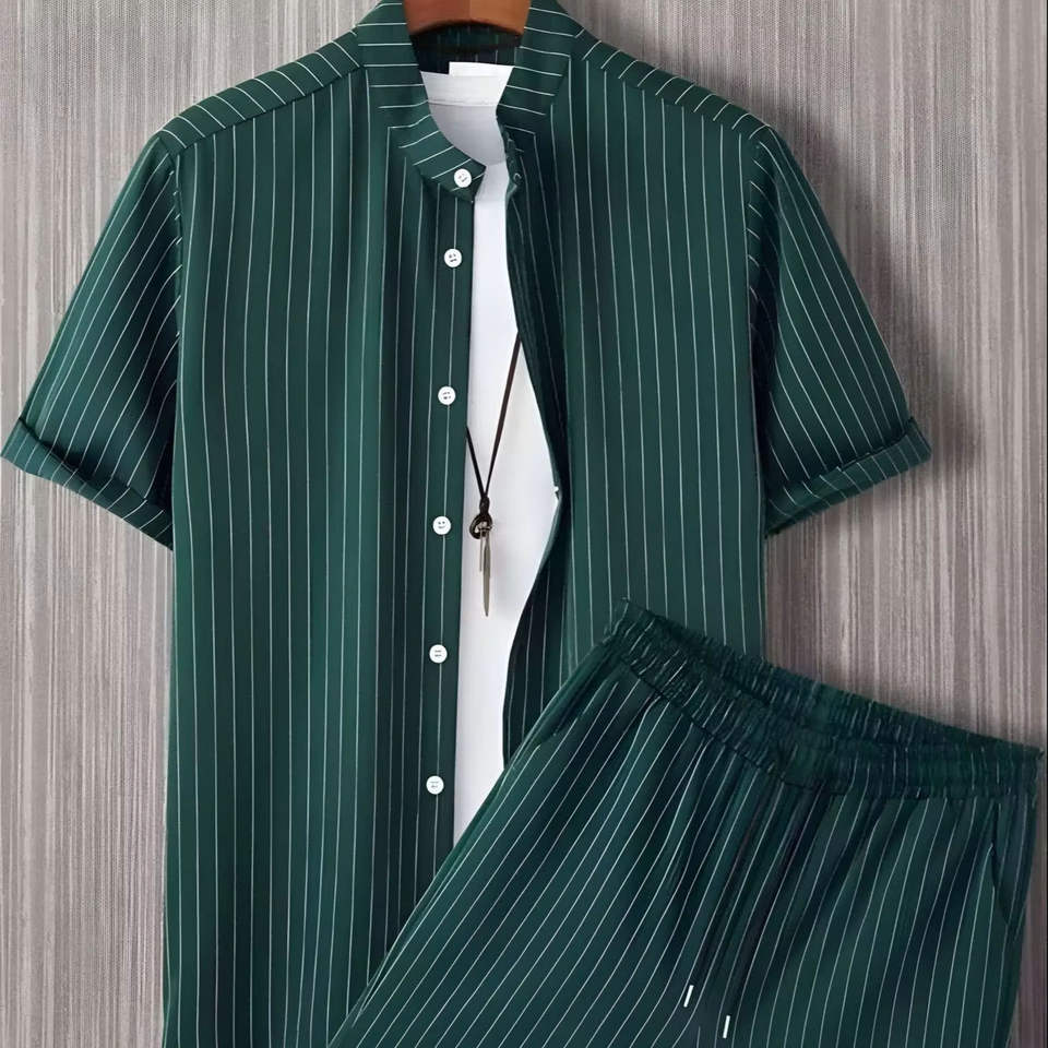 ชุดเสื้อผ้าผู้ชายผ้าฝ้าย 2 ชิ้น ขายส่ง ลายพิมพ์เรโทร ชุดลำลองฤดูร้อน เสื้อผ้าสตรีทแวร์แบบซักล้างได้ เสื้อเชิ้ต กางเกงขาสั้น สำหรับฤดูใบไม้ร่วง