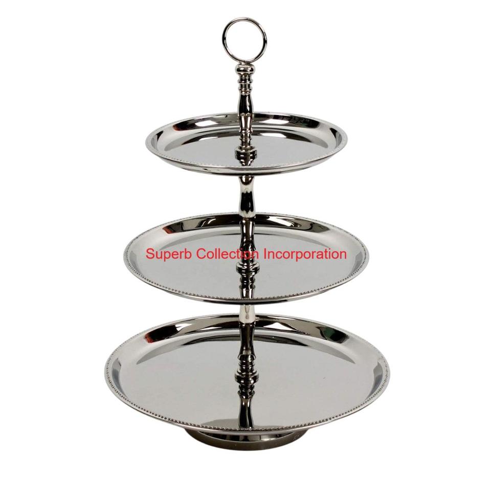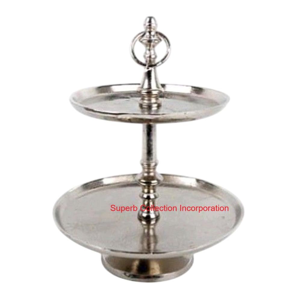 ชั้นวางเค้กโลหะทรงกลม2ชั้นถาดโชว์ขนมทำจากสแตนเลสสำหรับงานแต่งงานและของตกแต่งบ้าน