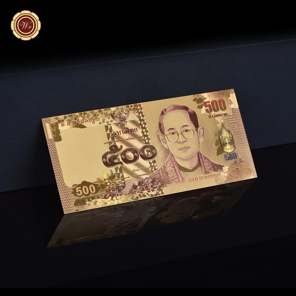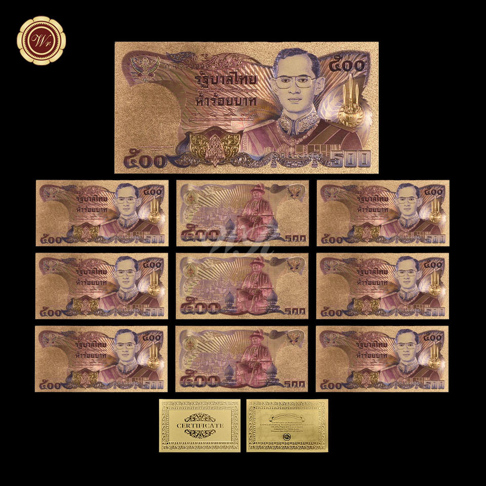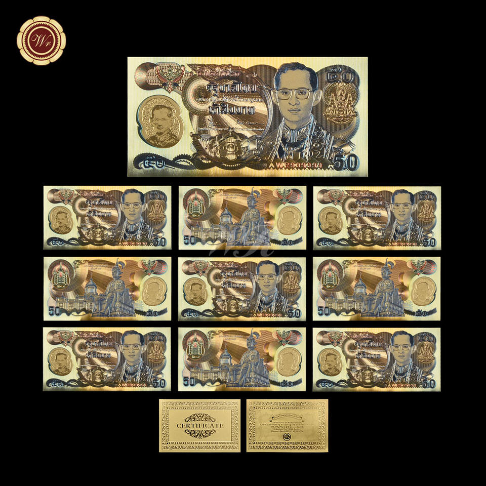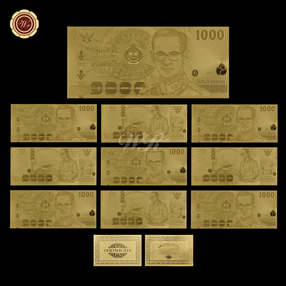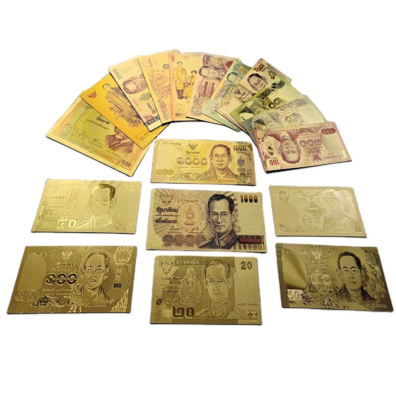 Wholesale 20 Types Thailand 24k Gold Banknote Thai Baht Bill Plastic Prop Money for Collection and Gifts