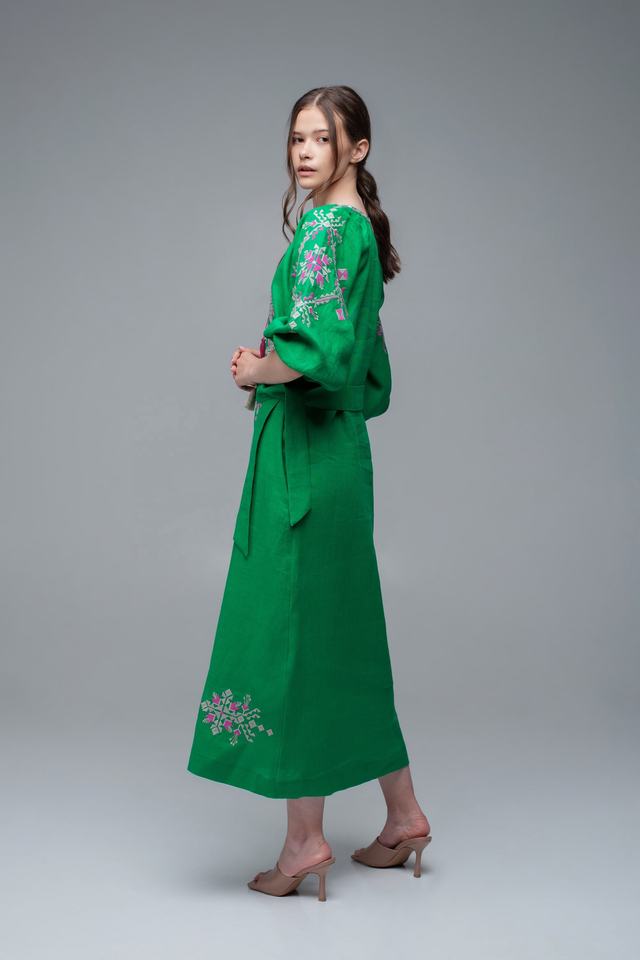 เดรส2022เหนือเข่าเอวสูงสไตล์เกาหลีย้อนยุคจับจีบทรงหลวมปักลายดอกไม้อย่างสง่างามฤดูใบไม้ผลิ