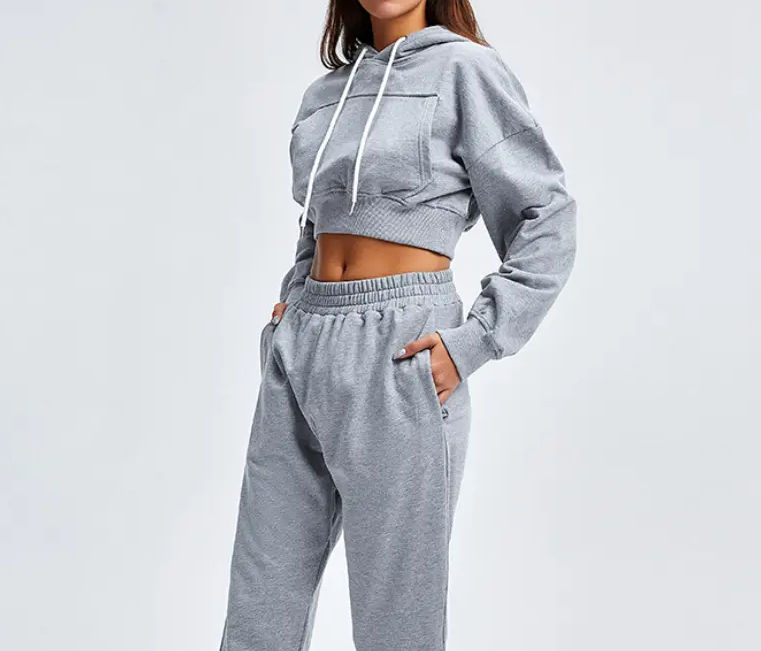 ชุดเซ็ตเสื้อครอปท็อปและกางเกงแทรคสูทแฟชั่นสตรีทแวร์ฤดูหนาวปี 2024 ราคาส่งถูก รับผลิตตามแบบ