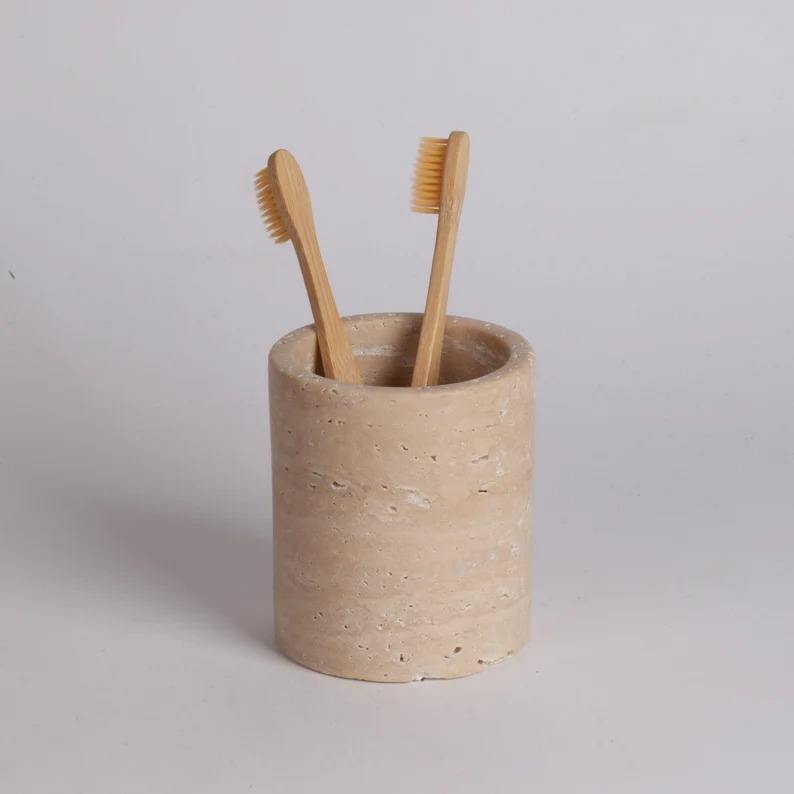 ที่ใส่ปากกาหินอ่อนลายสี่เหลี่ยมอุปกรณ์สำนักงานที่2024โต๊ะไม้ที่ใส่แปรงสีฟันจำนวนมาก