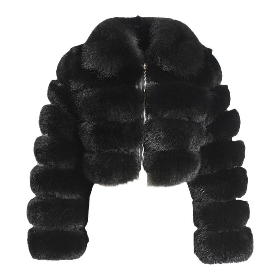 เสื้อโค้ทผู้หญิงแขนยาวแบบสั้นต่อผ้าขนสุนัขจิ้งจอก แฟชั่นใหม่ ฤดูใบไม้ร่วงและฤดูหนาว ปี 2025 ขายส่ง