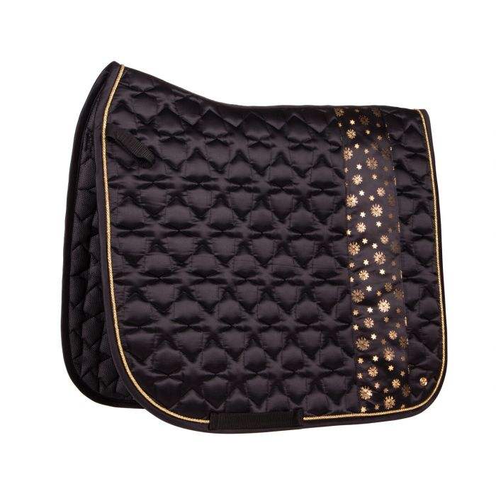 แผ่นรองอานสำหรับกระโดดลายจุดหิมะสีทองผ้าซาตินสีดำ2025จัดส่งทั่วโลก