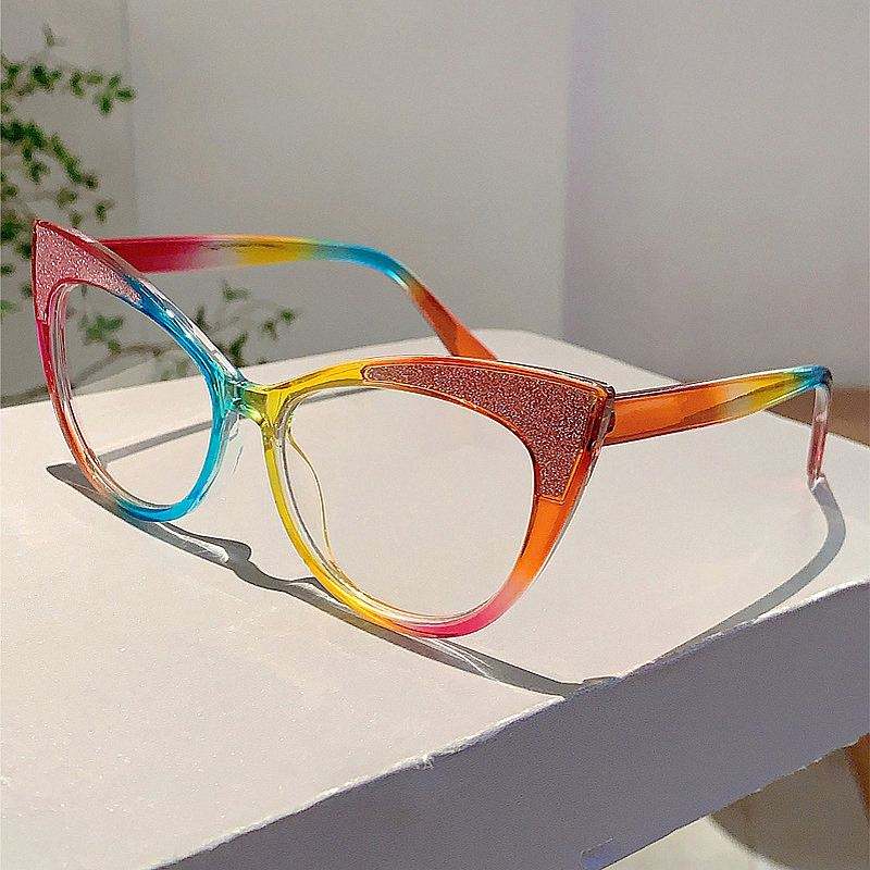 แว่นตาแฟชั่นผู้หญิงทรงใหญ่ รุ่นปี 2025 สีสันสดใส ประดับคริสตัล ป้องกันแสงสีฟ้า ขายส่ง