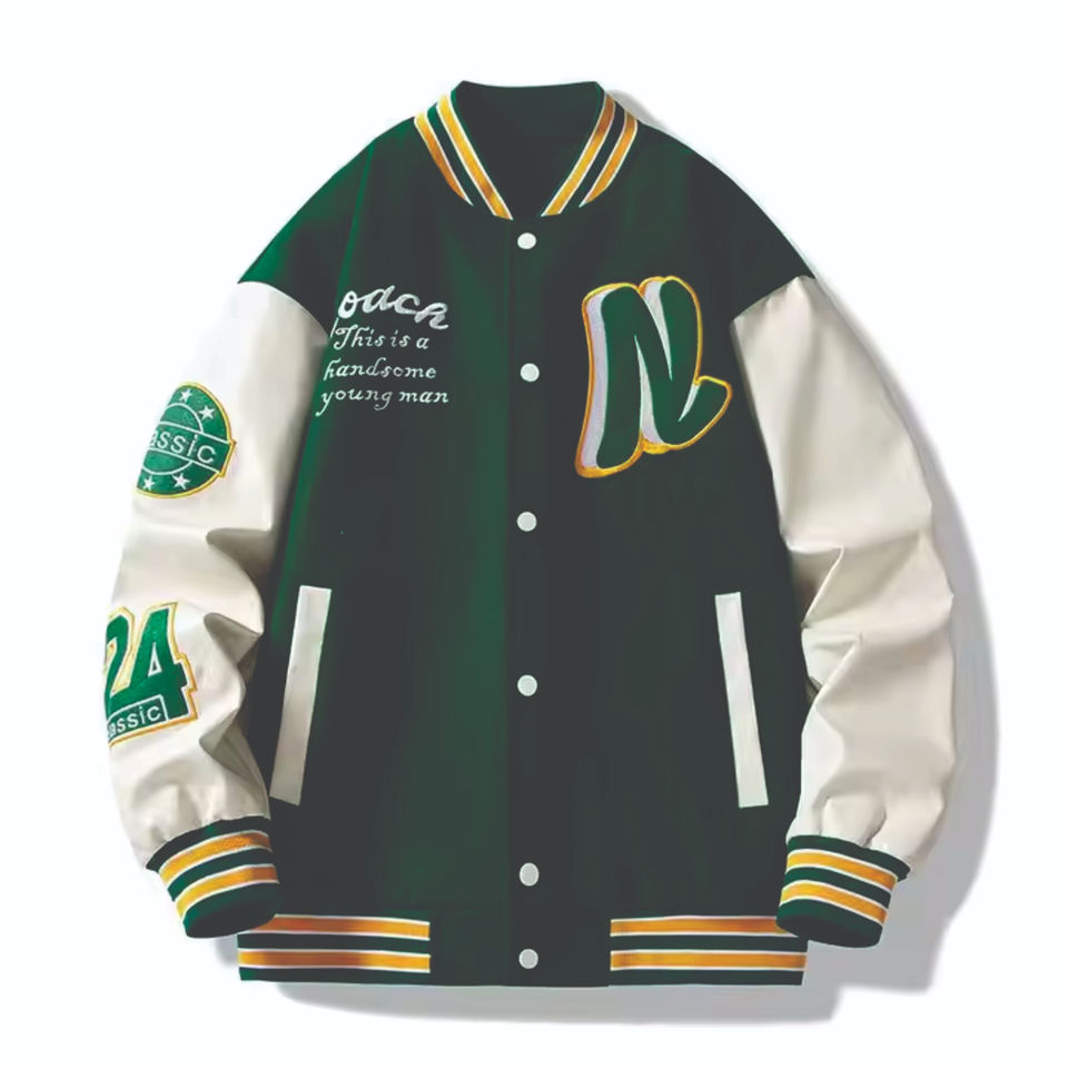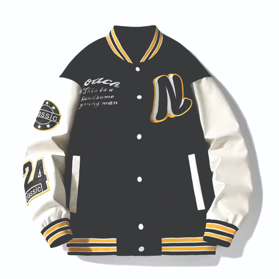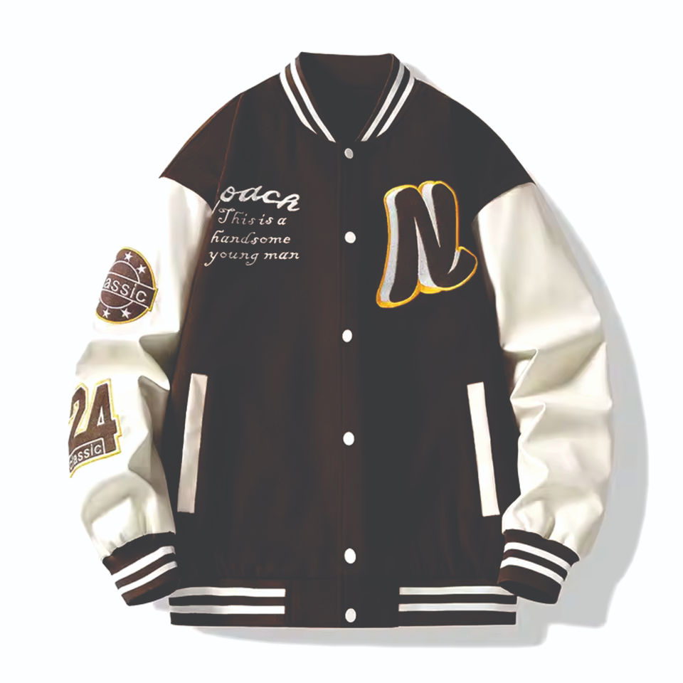 Wholesale 2025 Men's High Quality Leather/Wool Waterproof Varsity Jacket Winter Best Design Street Wear Embroidered Stand Collar