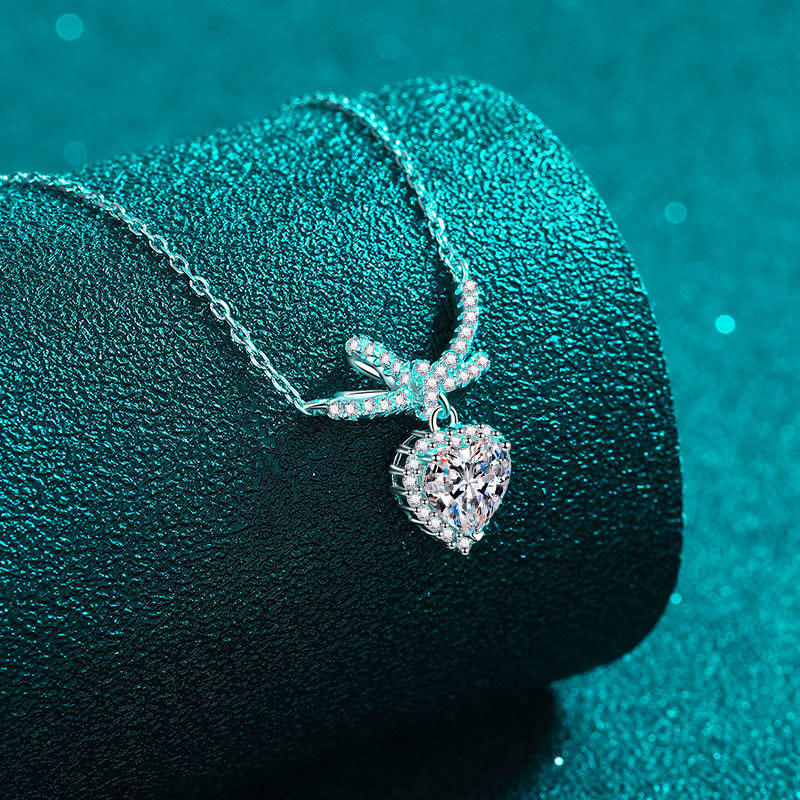 ขายส่ง2025ตกแต่งใหม่ที่มีคุณภาพสูงเครื่องประดับเงินสเตอร์ลิง925สร้อยคอเพชรโมอิส1CT หัวใจตัด