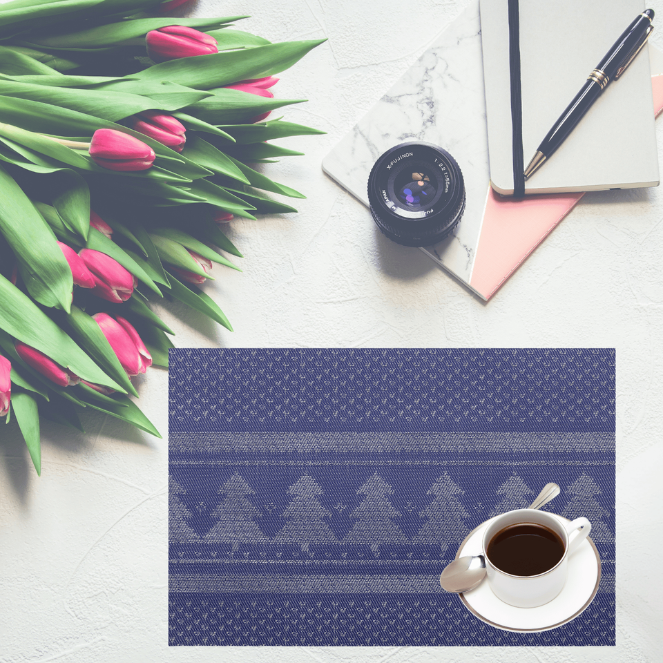 แผ่นรองจานหนังเทียมสำหรับห้องครัวแผ่นรองจานสีน้ำเงินแจ็คการ์ด2025ใหม่