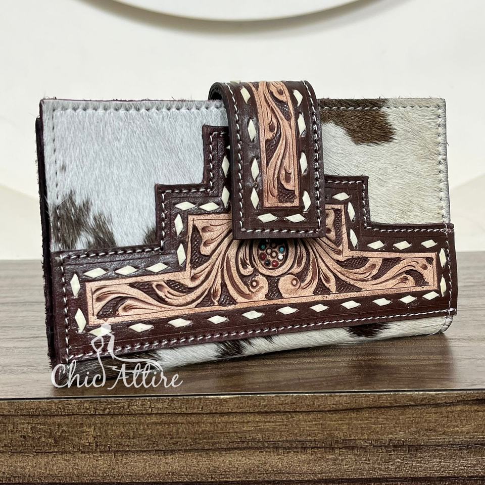 Hand Tooled Cowhide Leather Bifold Wallet
